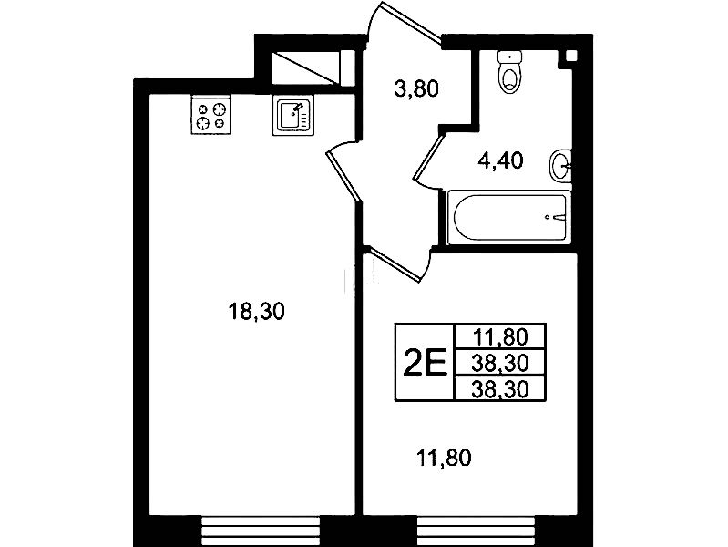 Однокомнатная квартира на 4-ом этаже 38,3 кв.м