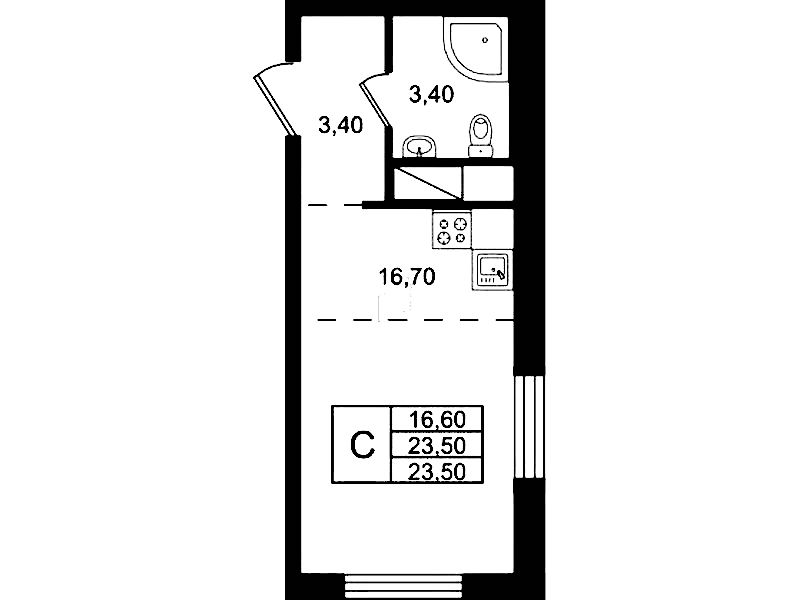 - Площадь23,5 м2