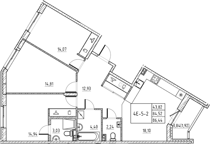 - Площадь86,44 м2
