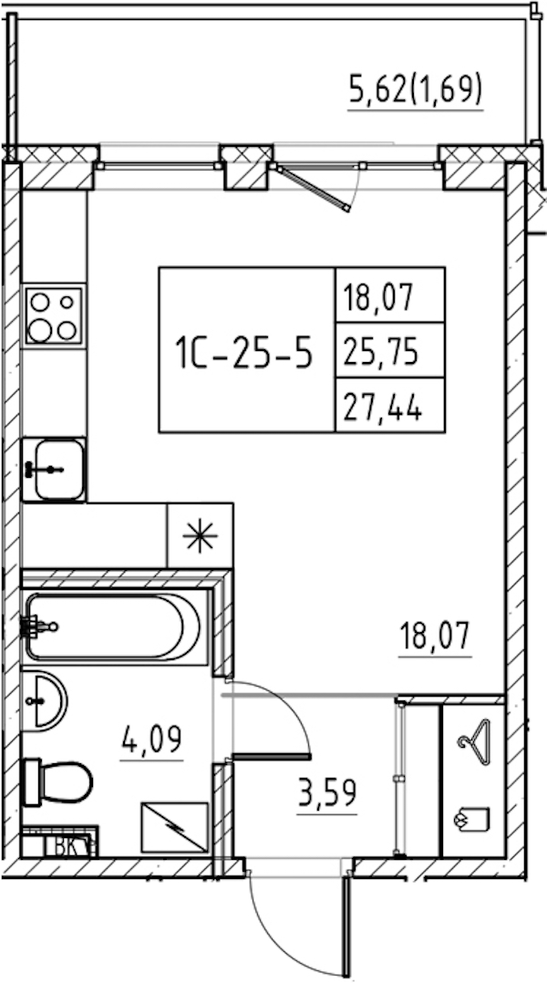 Квартира-студия на 2-ом этаже 27,44 кв.м