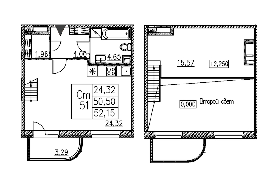 Квартира-студия на 1-ом этаже 52,15 кв.м