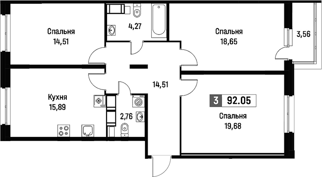 - Площадь92,05 м2