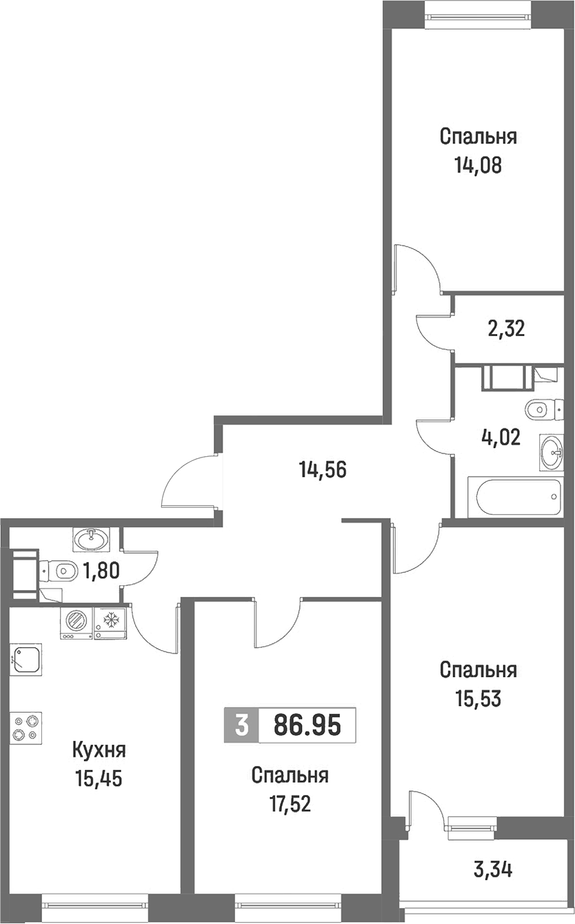 - Площадь86,95 м2