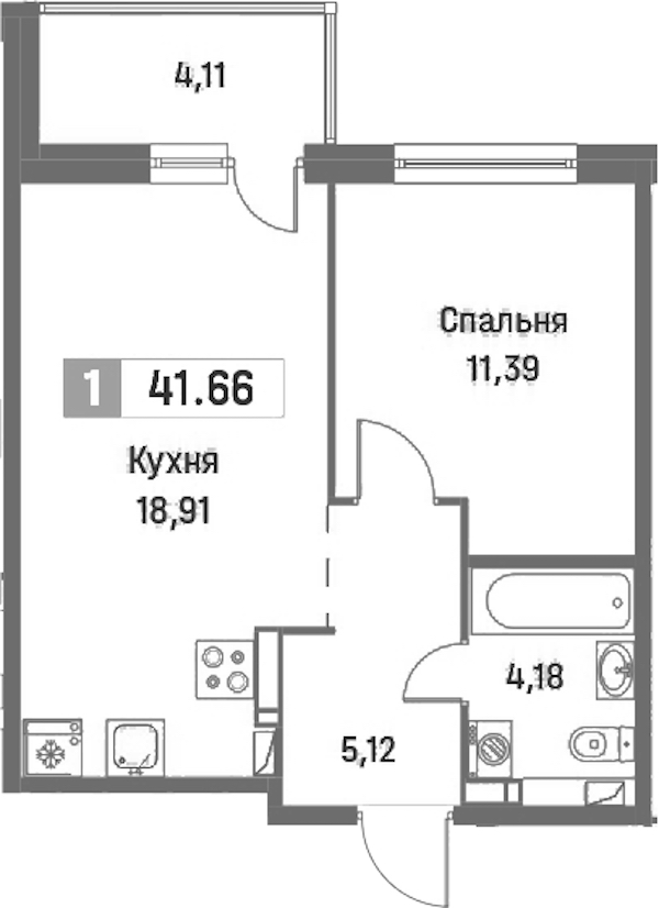 - Площадь41,66 м2