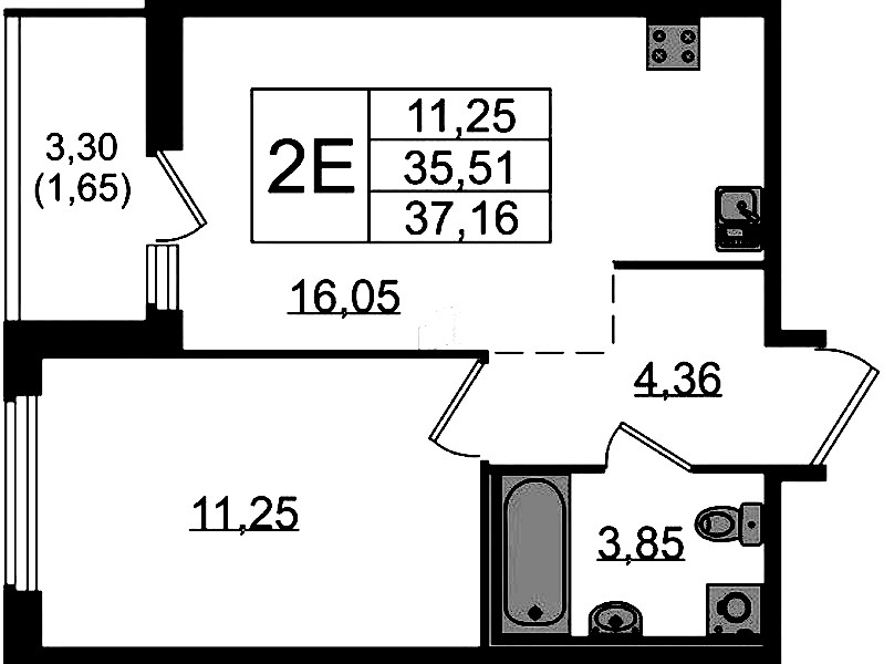 - Площадь37,16 м2