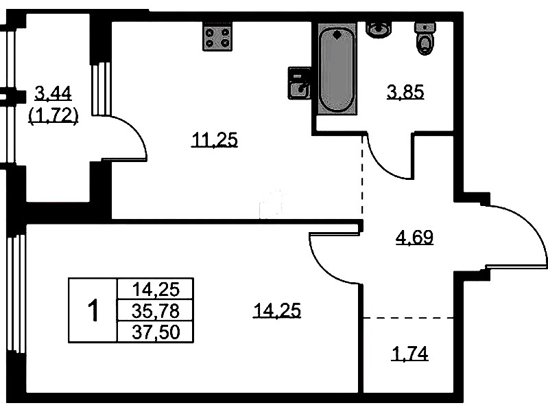 - Площадь37,5 м2
