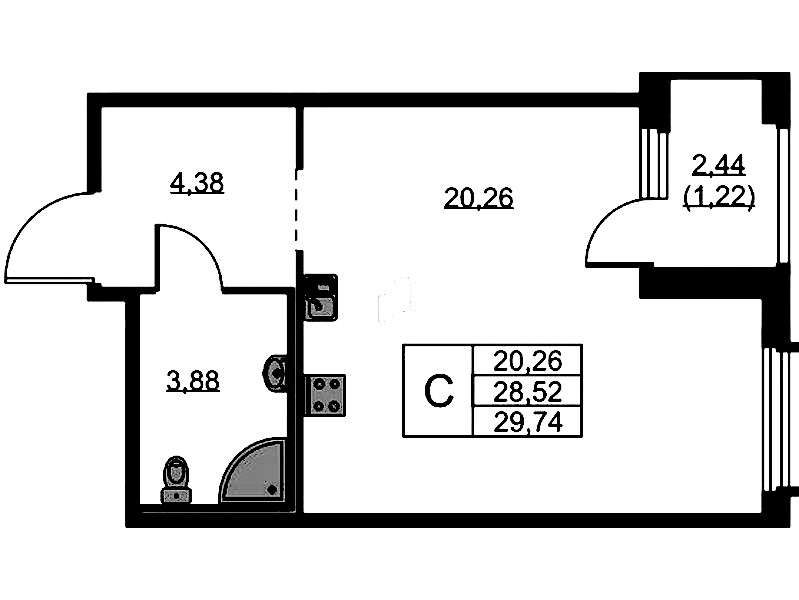 • Площадь29,74 м2