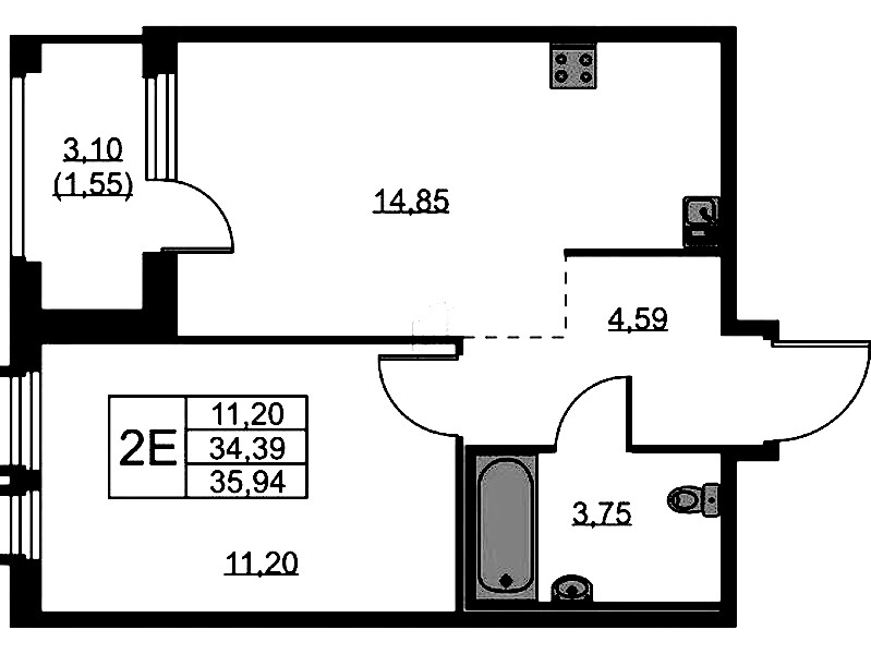 • Площадь35,94 м2