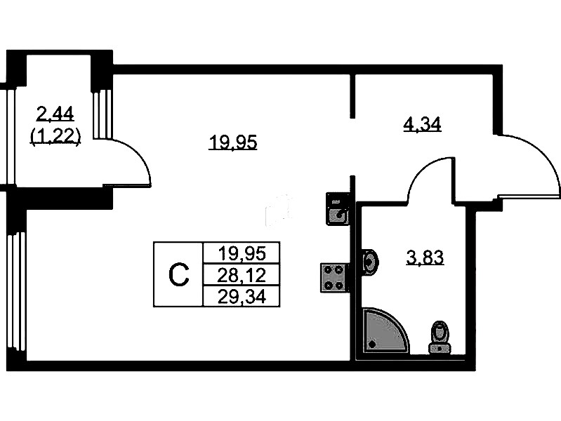 • Площадь29,34 м2