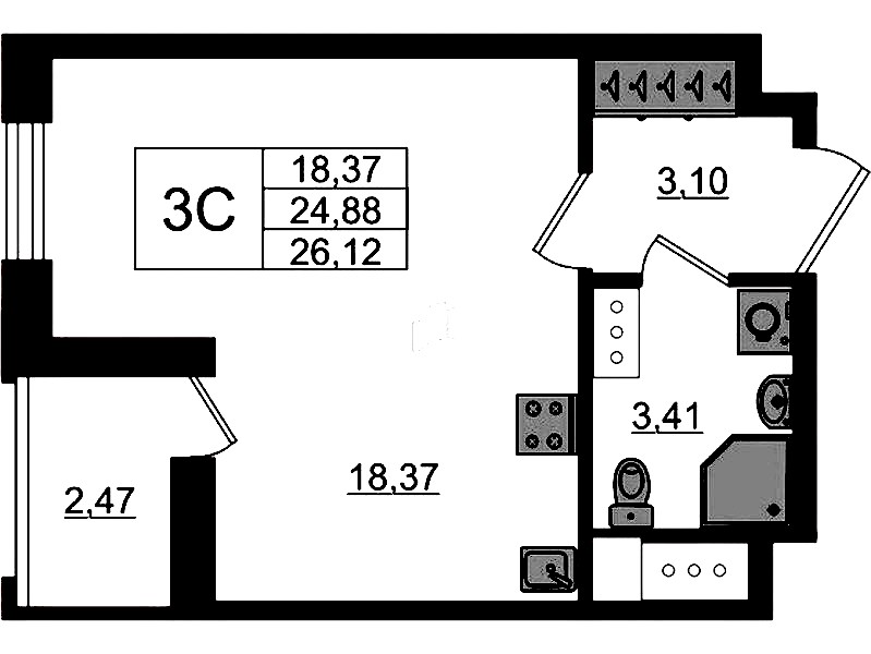 - Площадь24,88 м2