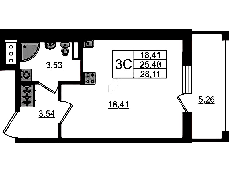 - Площадь25,48 м2