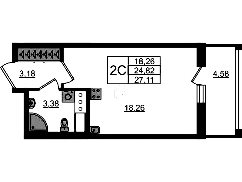 - Площадь24,82 м2