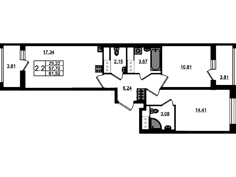 - Площадь57,7 м2