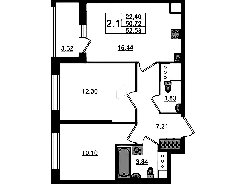 - Площадь кухни15,44 м2