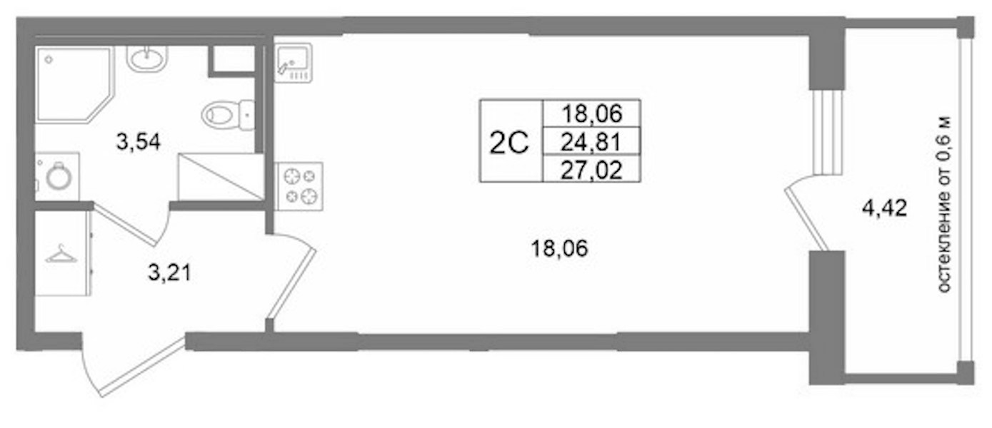 Квартира-студия на 9-ом этаже 24,81 кв.м