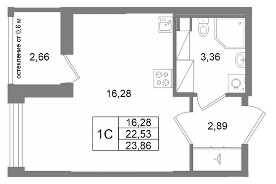 - Площадь22,53 м2