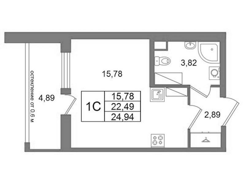• Площадь22,49 м2