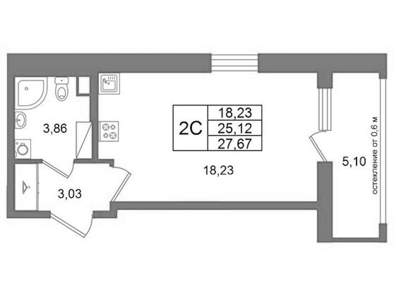 - Площадь25,12 м2