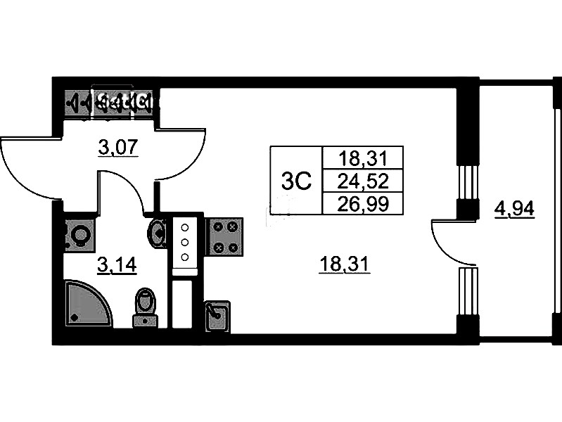 • Площадь24,52 м2