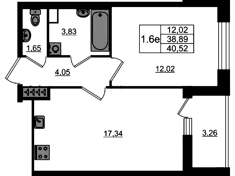 Однокомнатная квартира на 2-ом этаже 38,89 кв.м