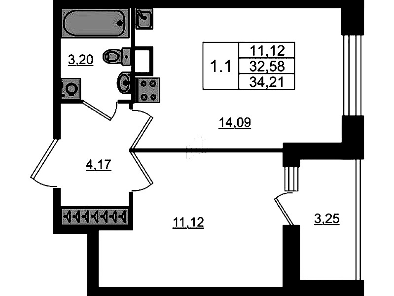 - Площадь32,58 м2