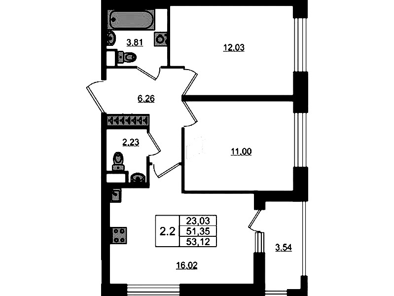 - Площадь51,35 м2