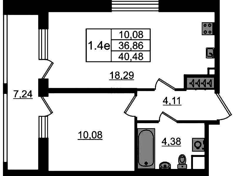 • Площадь36,86 м2