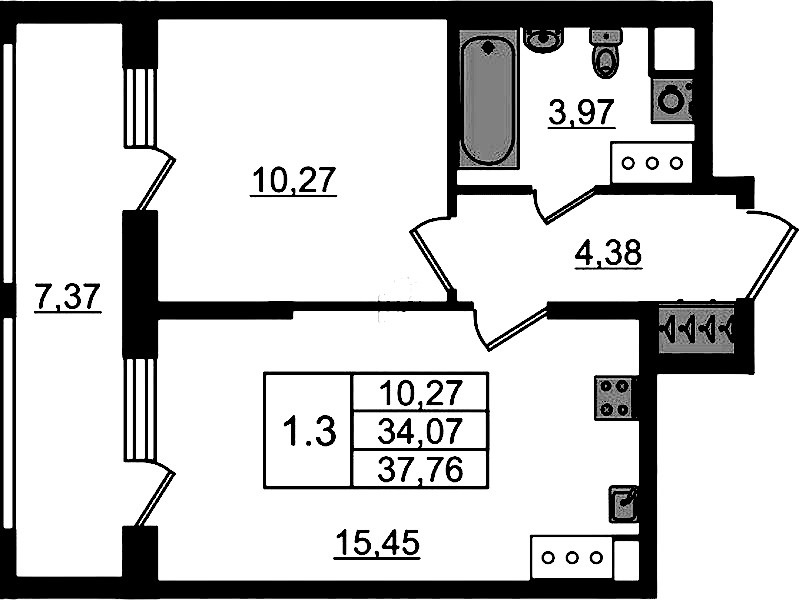 - Площадь34,07 м2