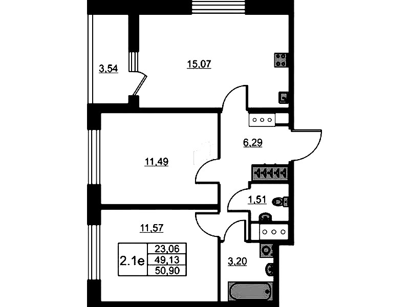 - Площадь49,13 м2