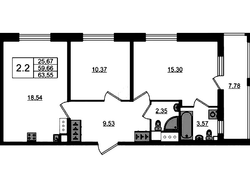 - Площадь59,66 м2