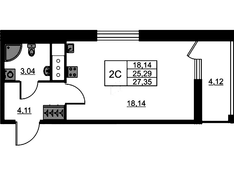 - Площадь25,29 м2
