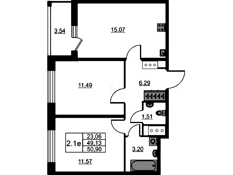 • Площадь кухни15,07 м2