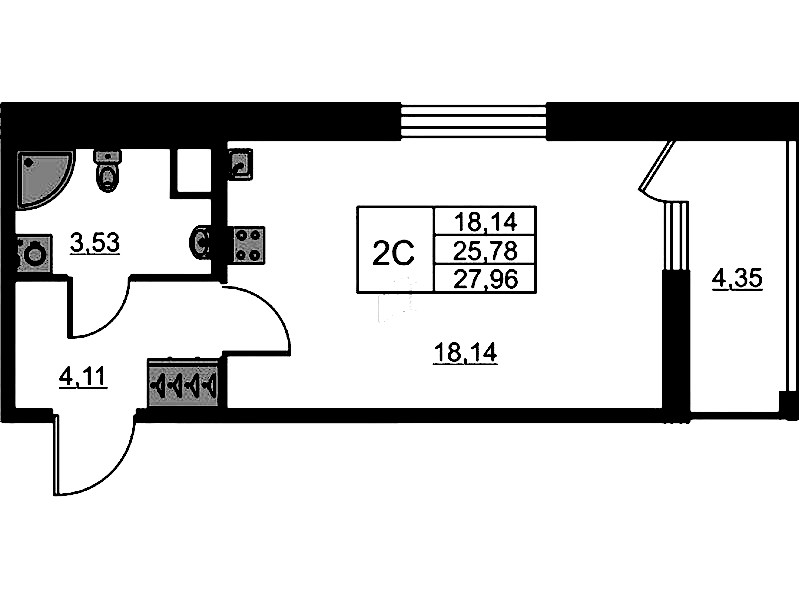 Квартира-студия на 1-ом этаже 25,78 кв.м