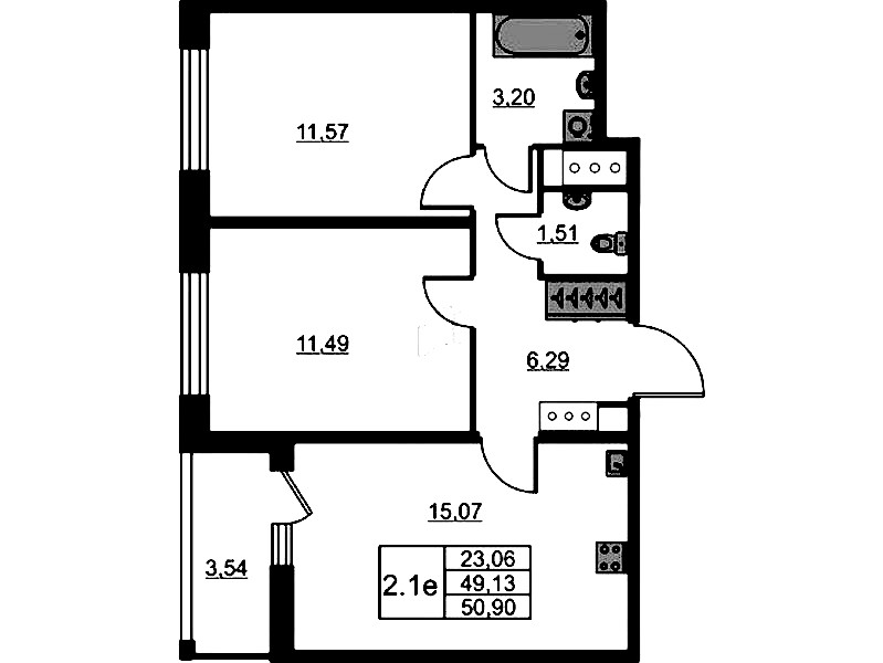 - Площадь49,13 м2