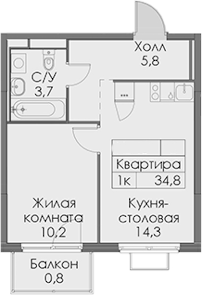 - Площадь34,8 м2