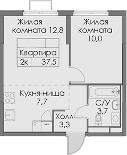 - Площадь37,5 м2