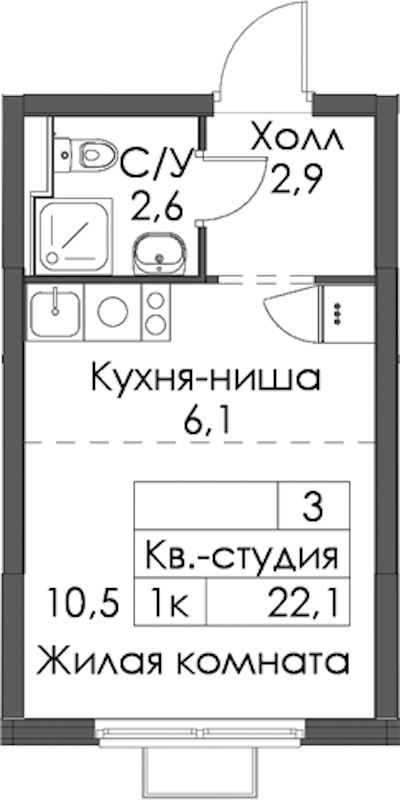 • Количество комнатСтудия