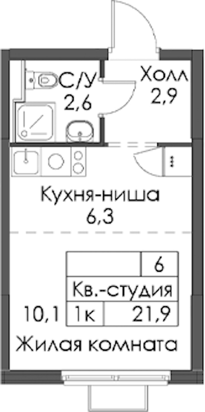 Квартира-студия на 10-ом этаже 21,9 кв.м