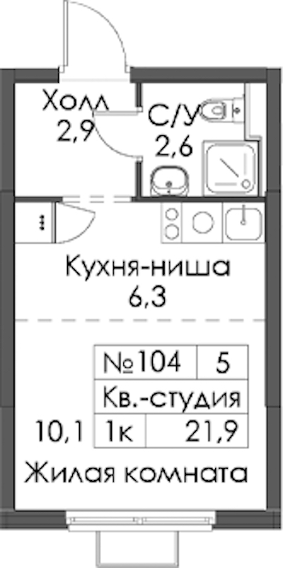 Квартира-студия на 3-ем этаже 21,9 кв.м