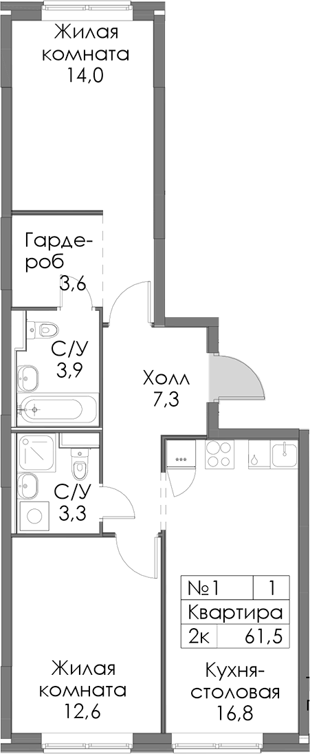 - Площадь61,5 м2