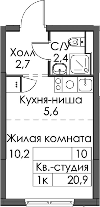 • Количество комнатСтудия