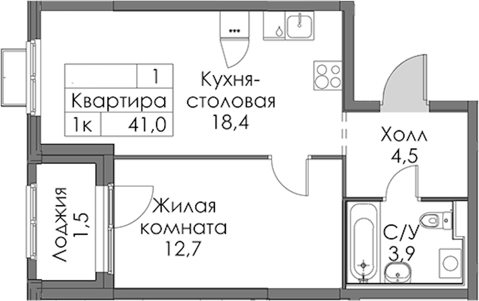 Однокомнатная квартира на 3-ем этаже 41 кв.м
