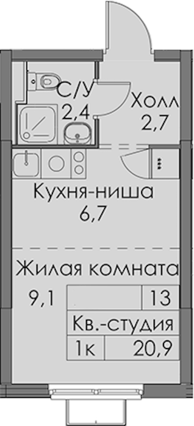 • Площадь20,9 м2