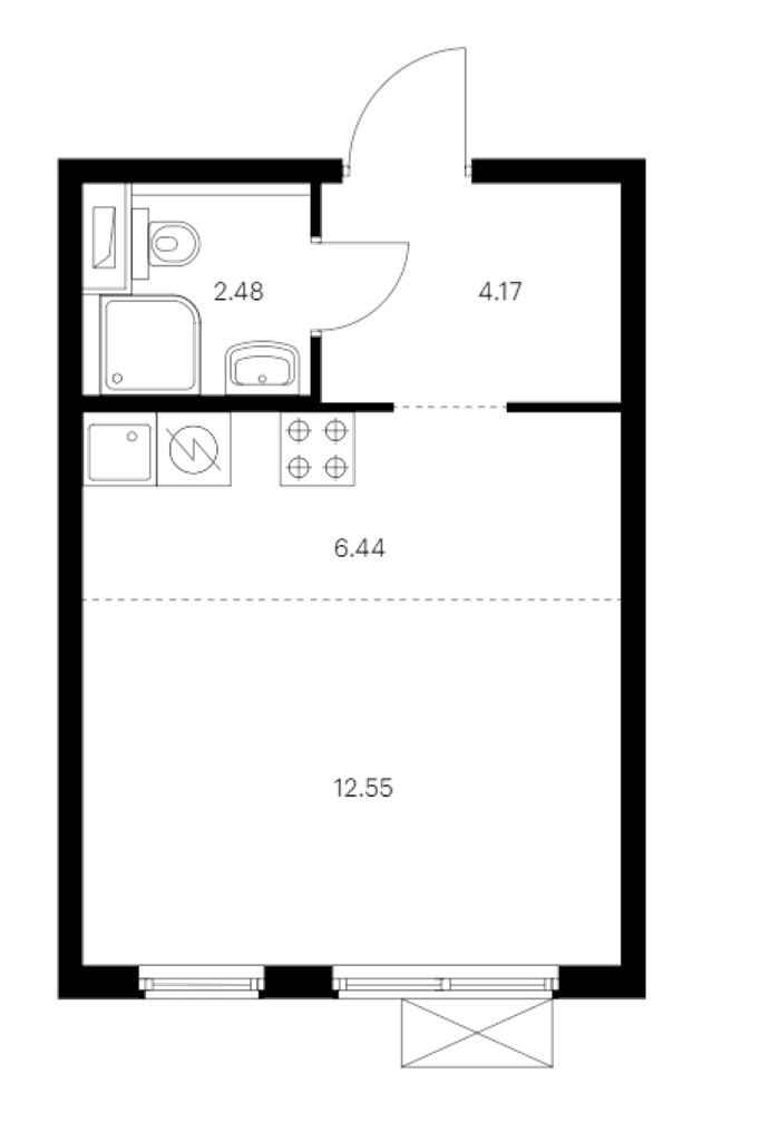 Квартира-студия на 8-ом этаже 25,64 кв.м