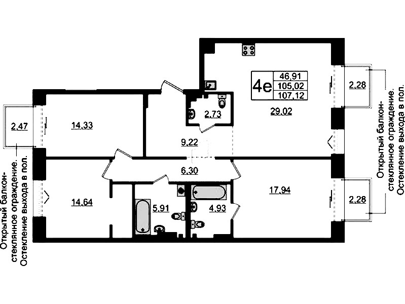 - Площадь105,02 м2