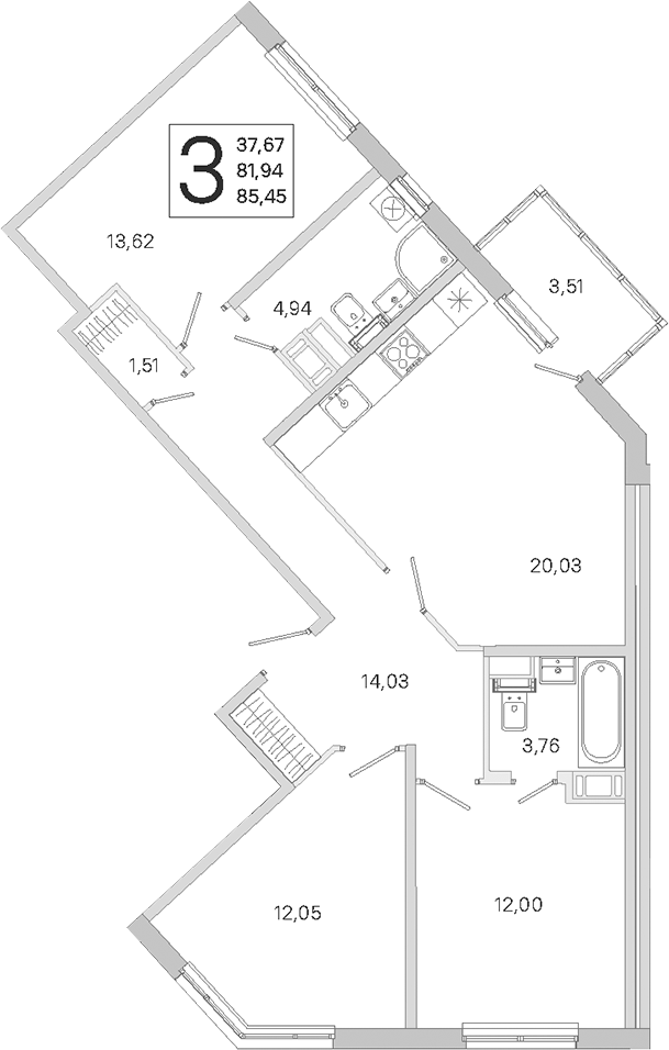 • Площадь кухни20,03 м2