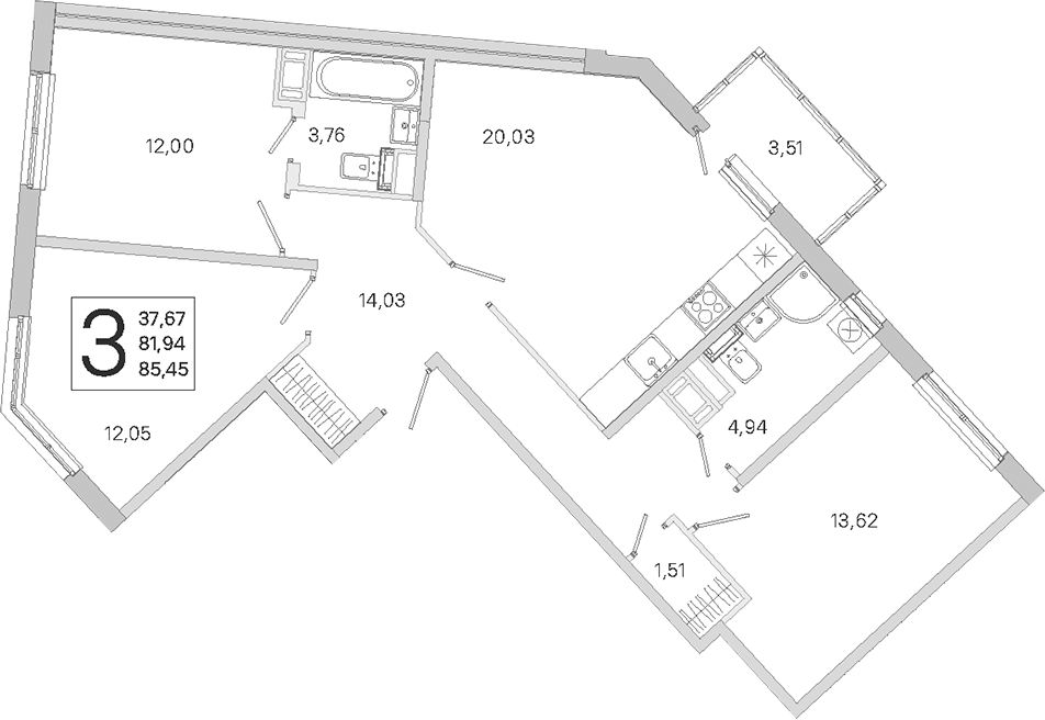 - Площадь кухни20,03 м2