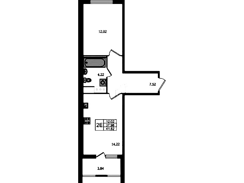 - Площадь кухни14,22 м2