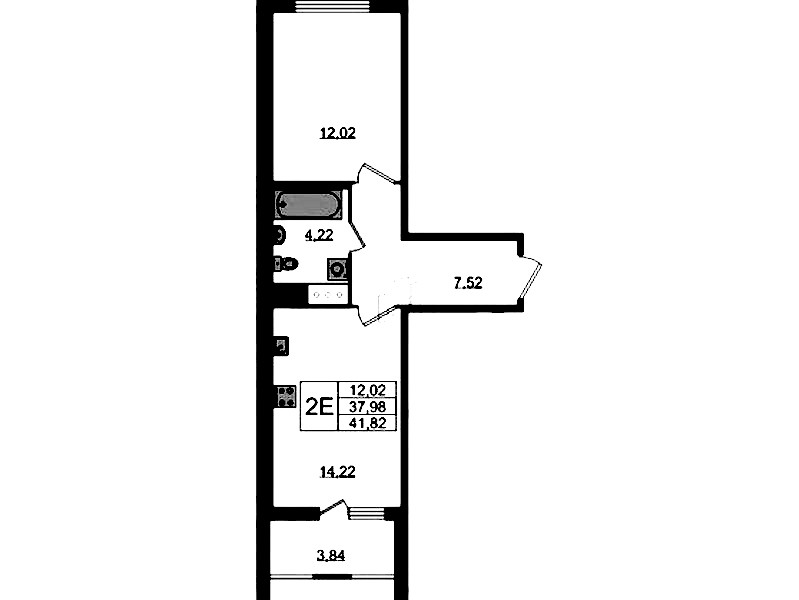 Однокомнатная квартира на 4-ом этаже 37,98 кв.м