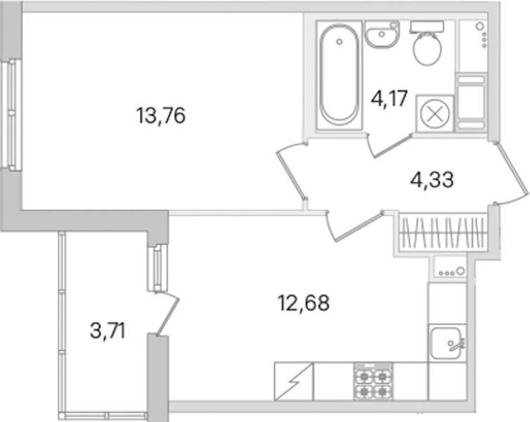 - Площадь кухни12,68 м2